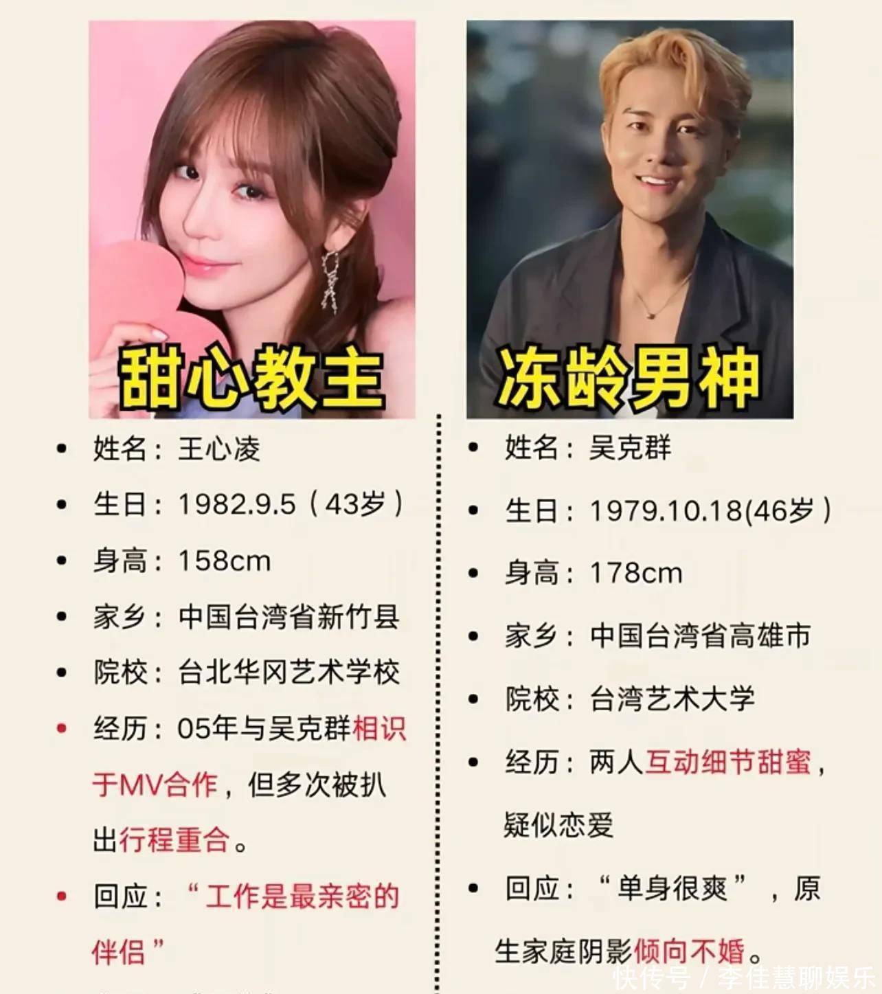王心凌今年43岁,吴克群46岁,两人的外形和气质非常搭配,希望两人好好恋爱,早点步入婚姻殿堂哦!网友都说,这一对金童玉女,太般配了,祝福。